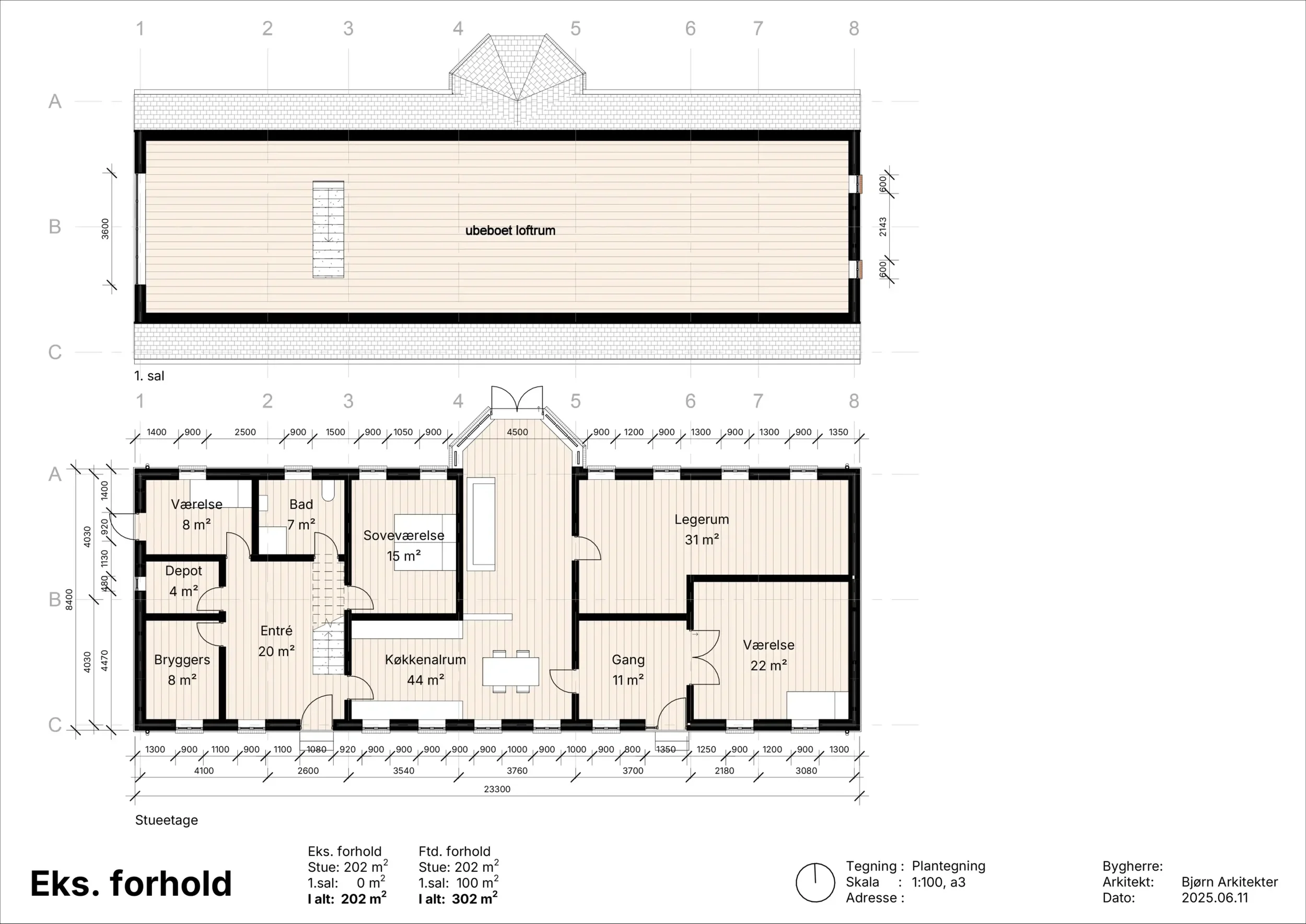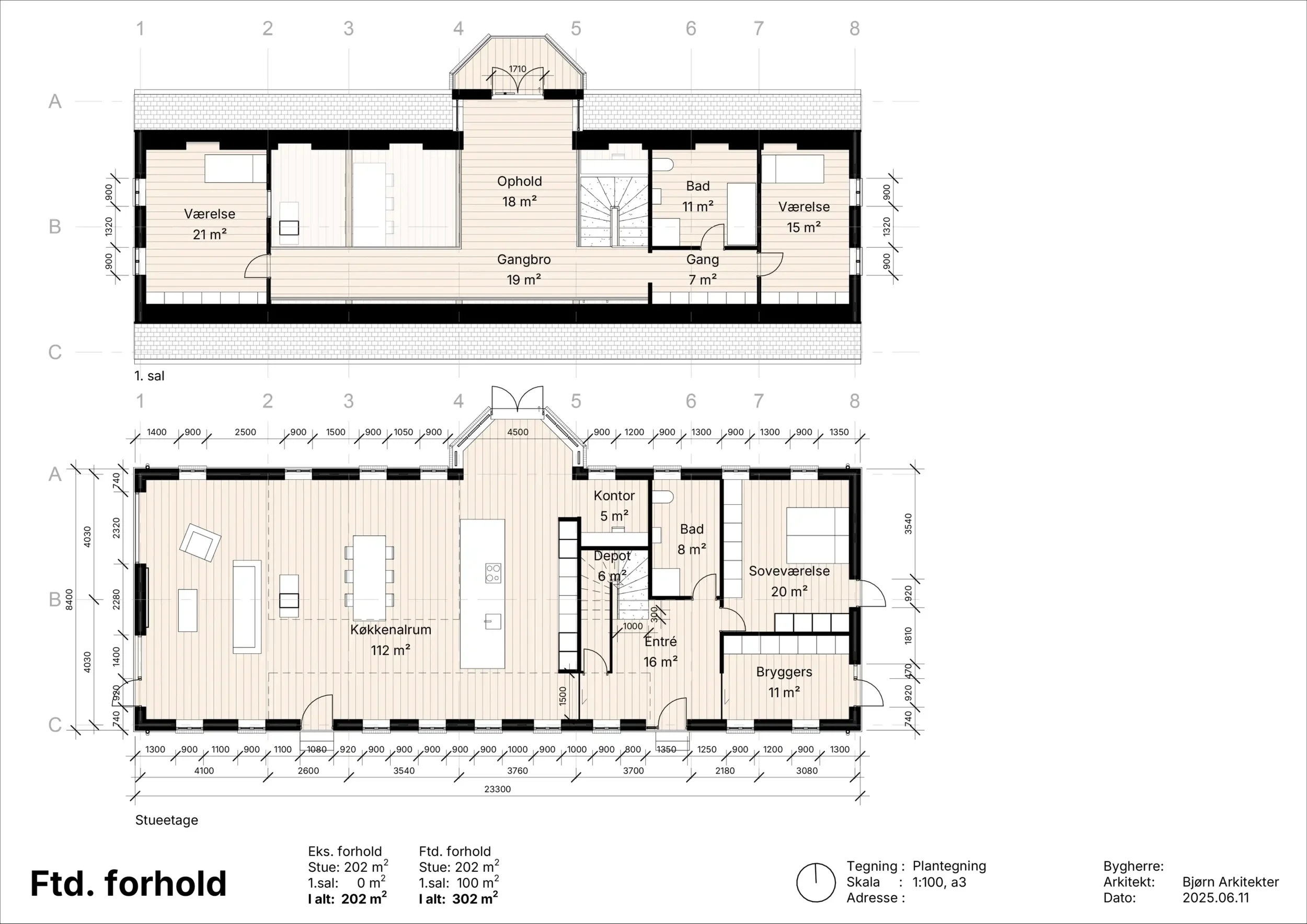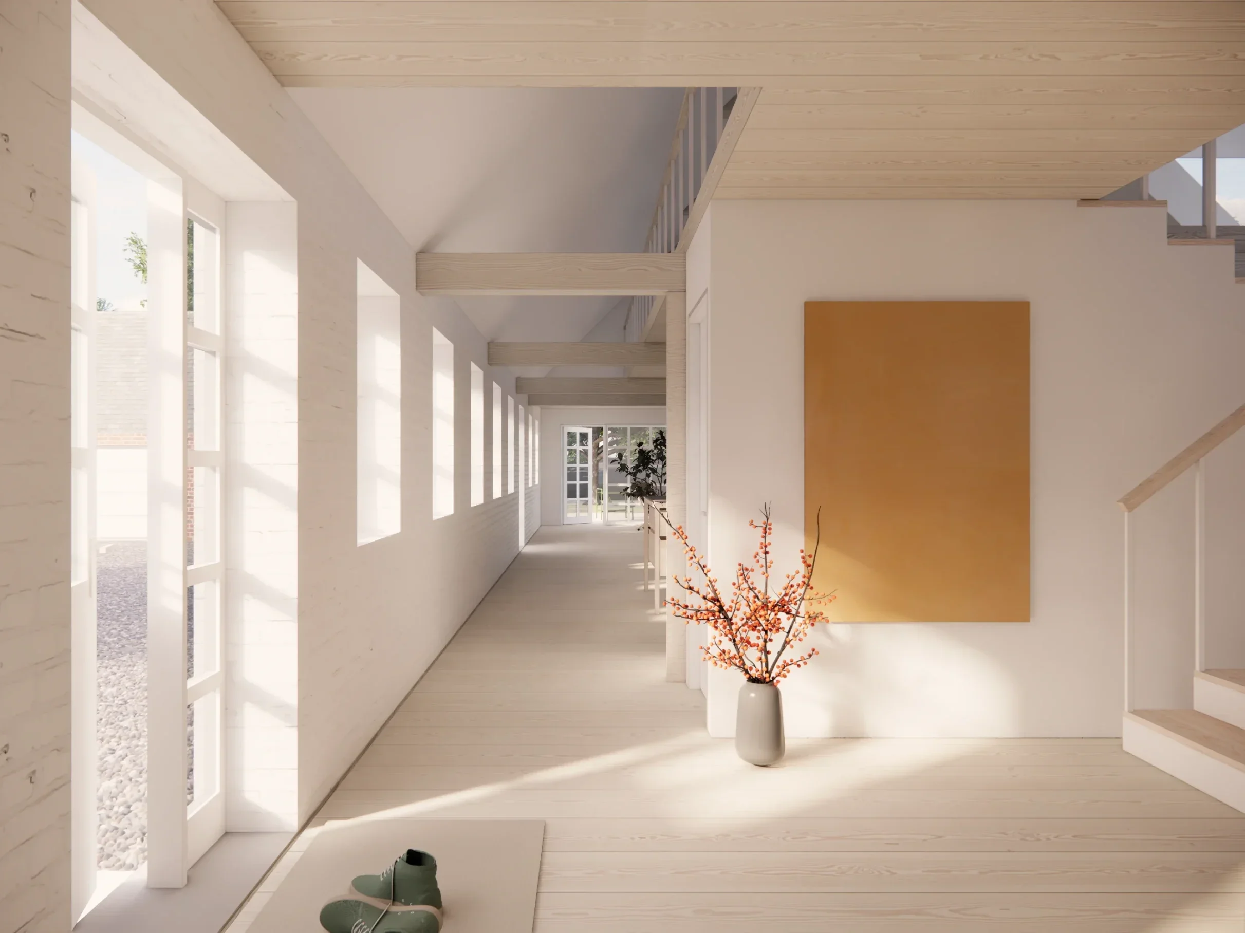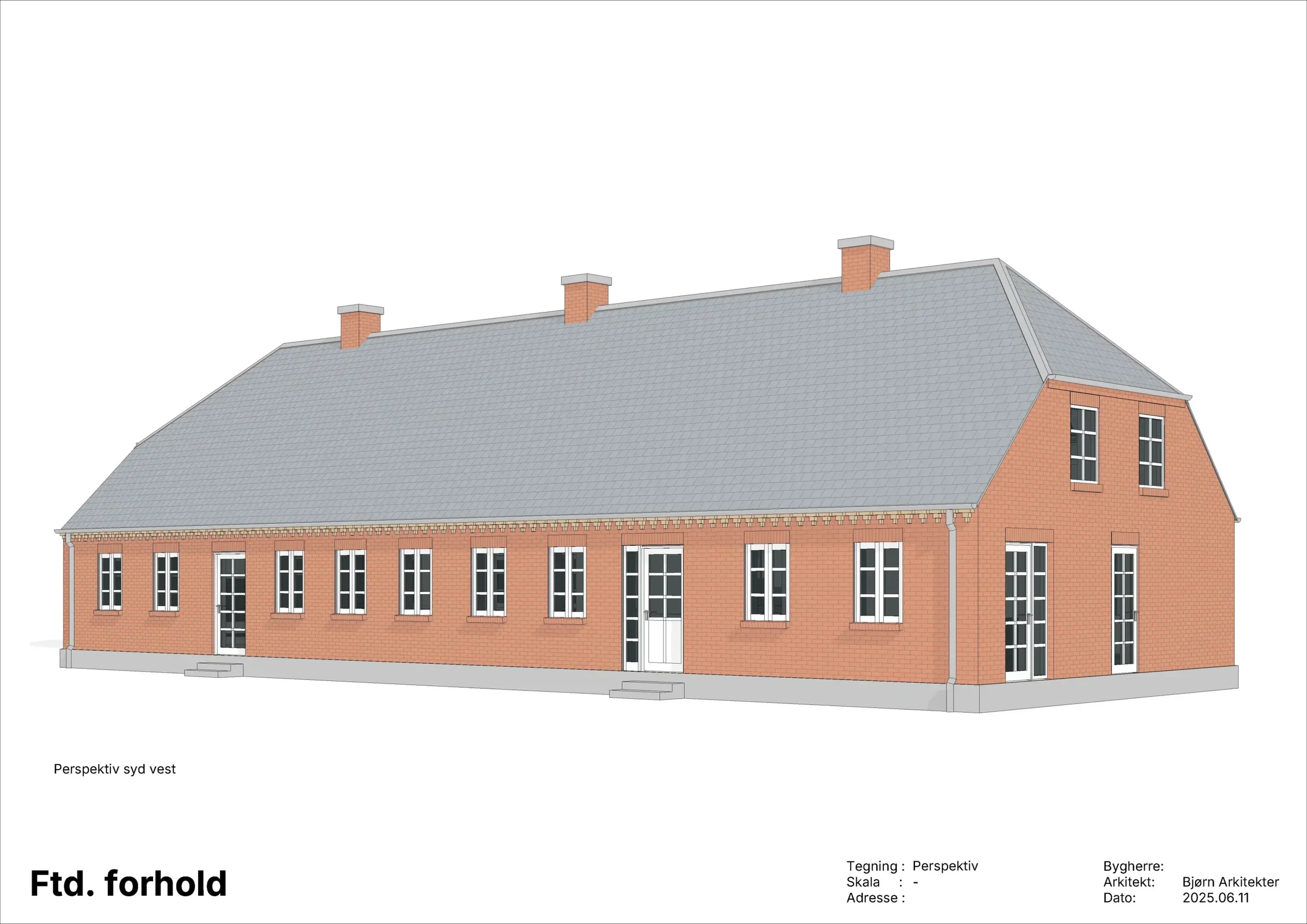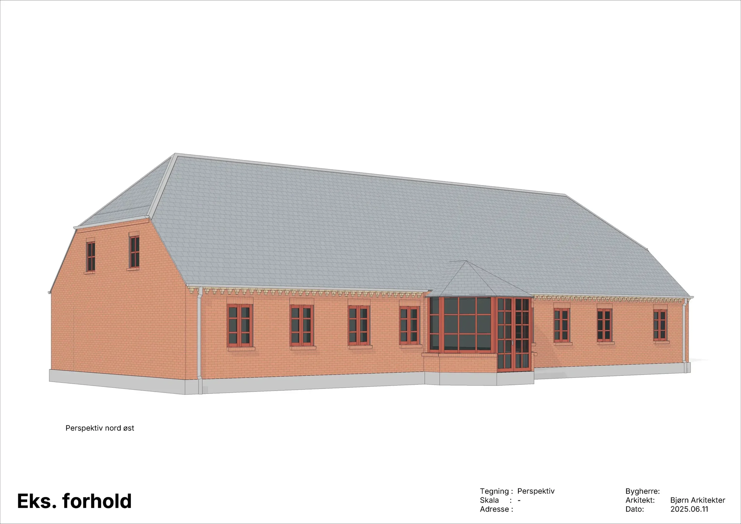 Huset er fra 1882, og er et fint eksempel på et muret klassisk landhus. Huset fik i 1999 tilføjet en karnap mod nord. Ombygningen, genetablerer de tre skorstene, tilføjer en kvist til karnappen og ændrer vinduerne tilbage til deres oprindelige farve hvid. Skiffertaget og de murede facader bevares. Der etableres 6 ovenlys, som alle er placeret mod nord for at holde forsiden mod gården fri.