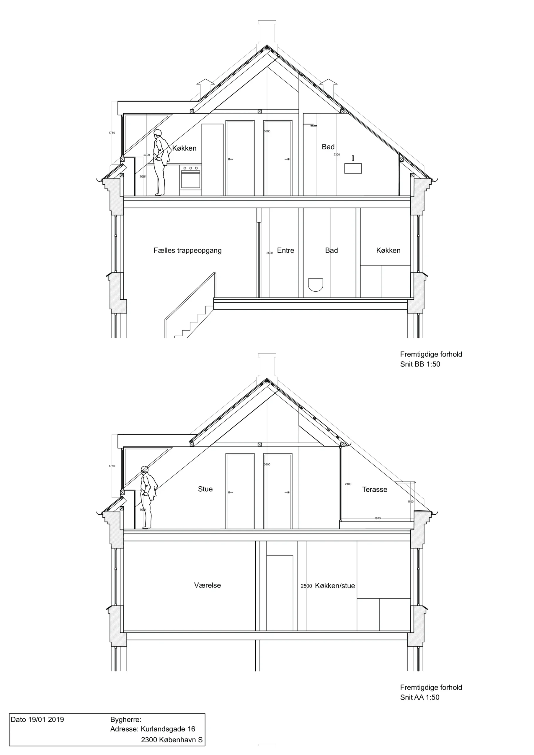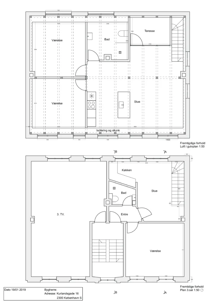 Snit eksisterende horhold, ombygning på Amager