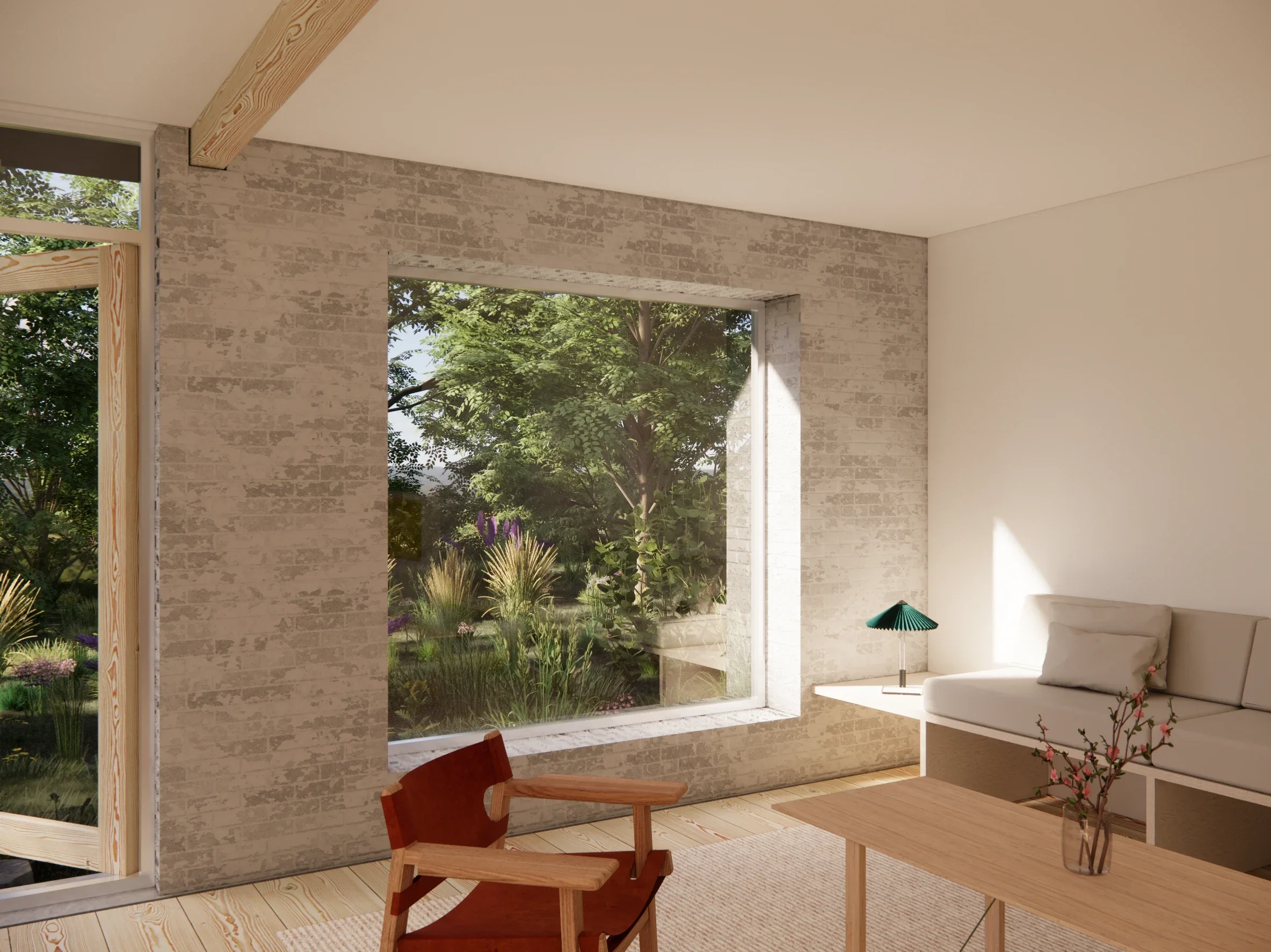 Det oprindelige hus er tegnet i 1963 af arkitekt Ole. M. Sørensen, og er et klassisk eksempel på 60ér arkitektur. Huset består af to vægge i lysegrå tegl mod øst og vest, som bær et markant fladt tag. Mod nord og syd er facaderne lette med store felter af glas og træbeklædning. Om- & tilbygningen udvider huset mod syd med største respekt for den oprindelige arkitektur.