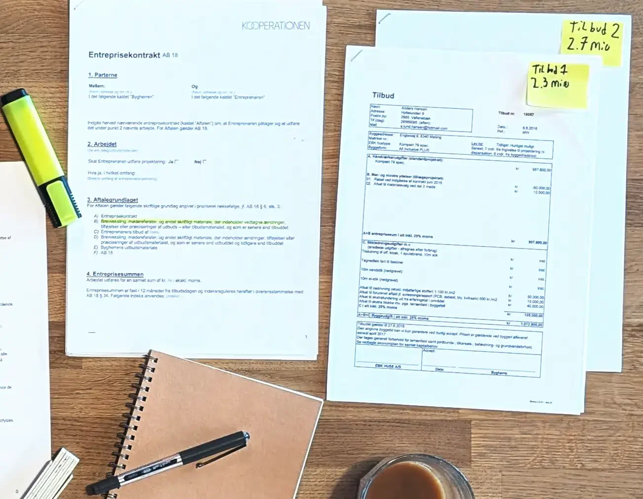 Hjælp til at indhente tilbud. Sammenligne tilbuddene og skrive byggekontrakt. -Pris fra 10.000 kr.